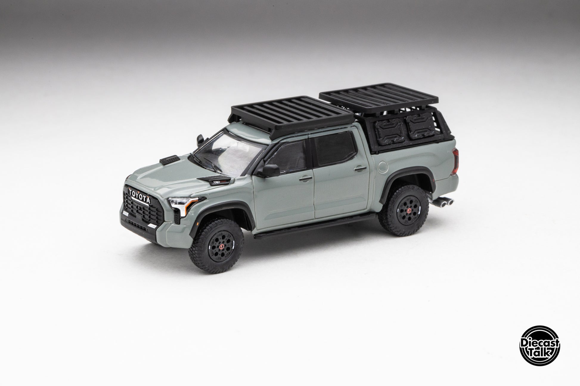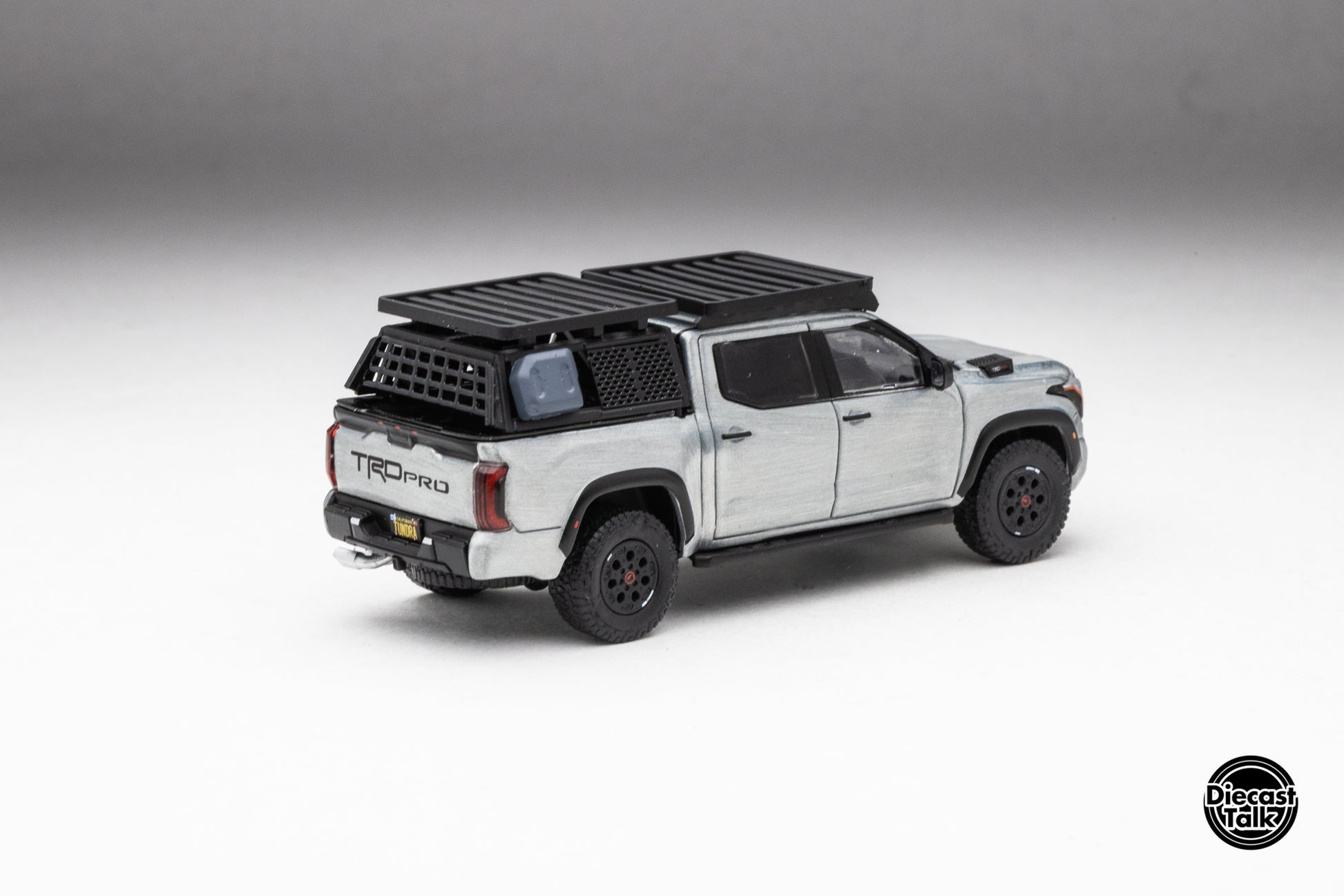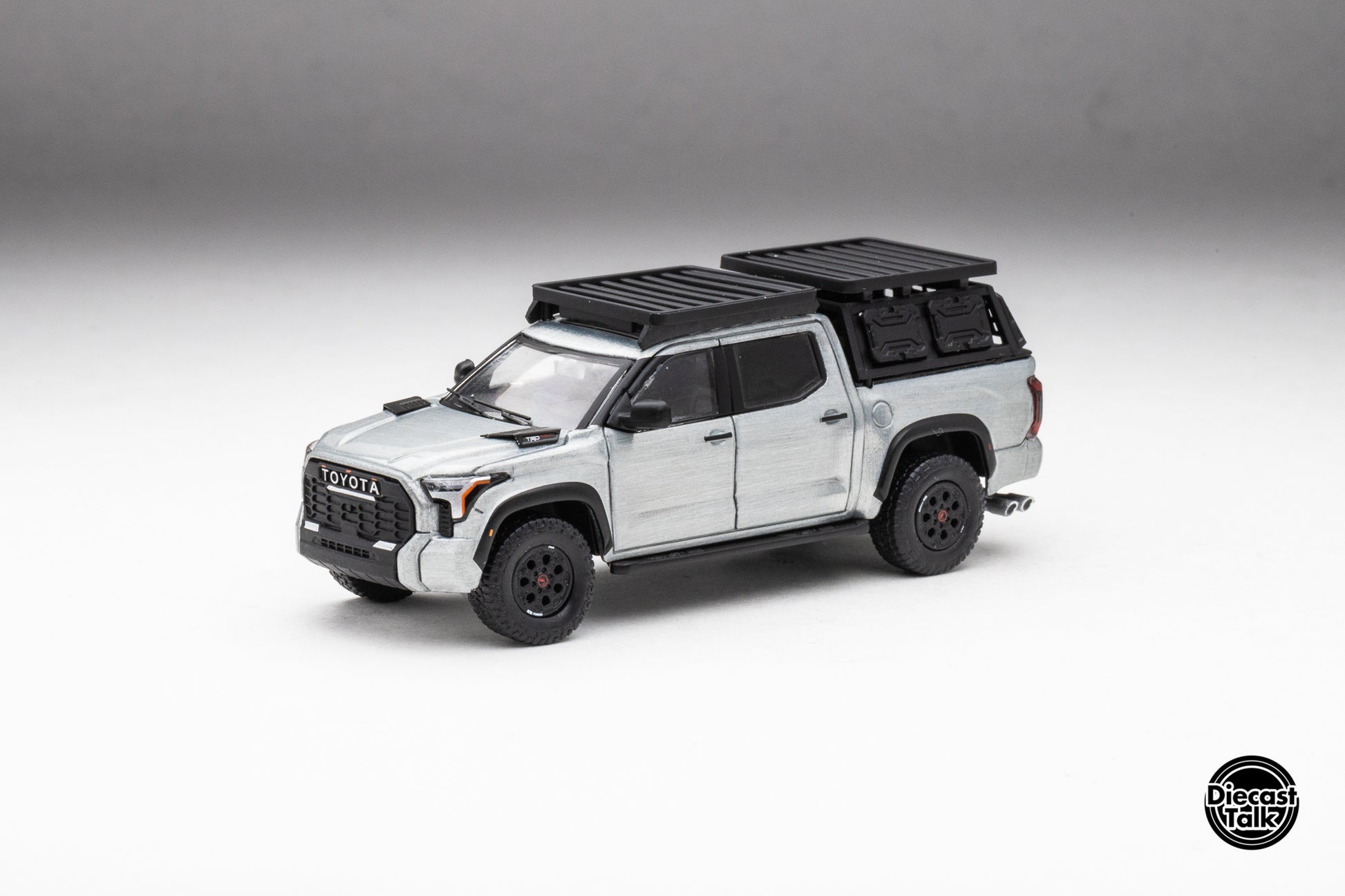DiecastTalk Exclusive GCD 1/64 Toyota Tundra TRD PRO Lunar Rock with roof rack & accessories