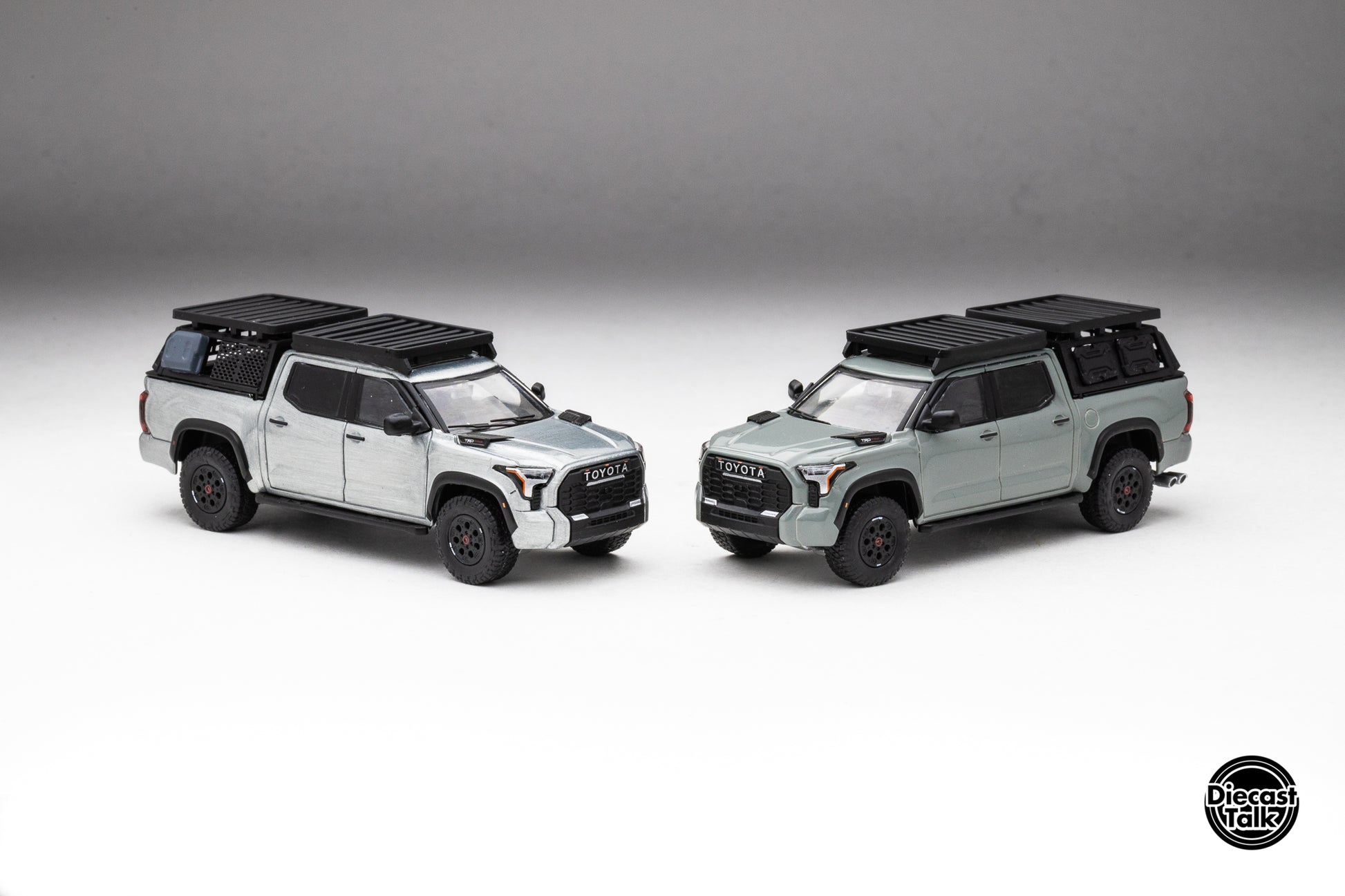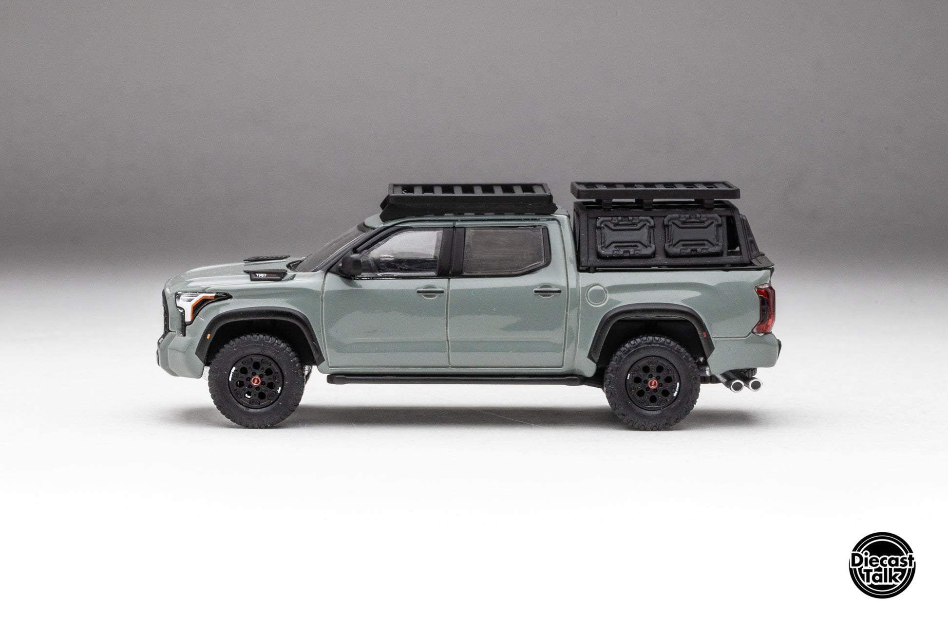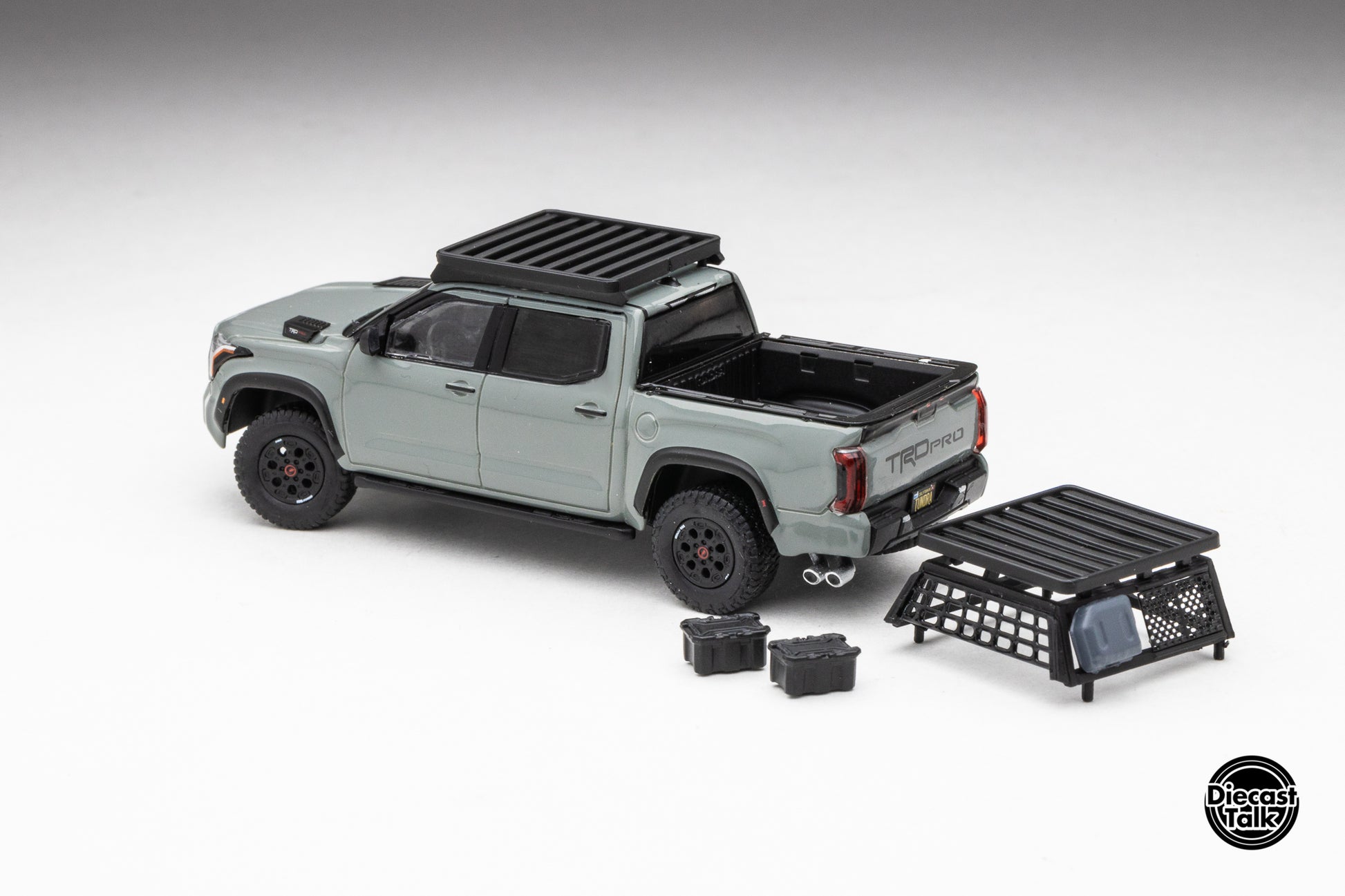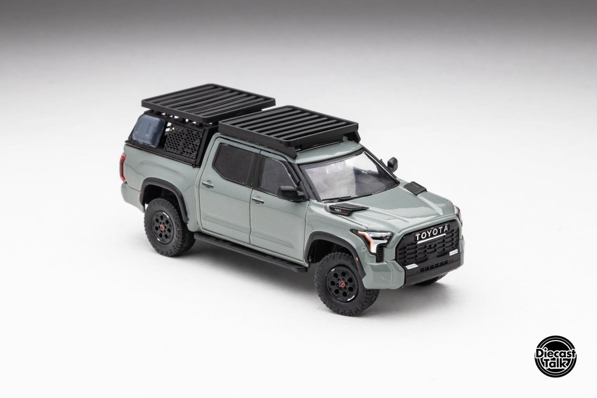 DiecastTalk Exclusive GCD 1/64 Toyota Tundra TRD PRO Lunar Rock with roof rack & accessories