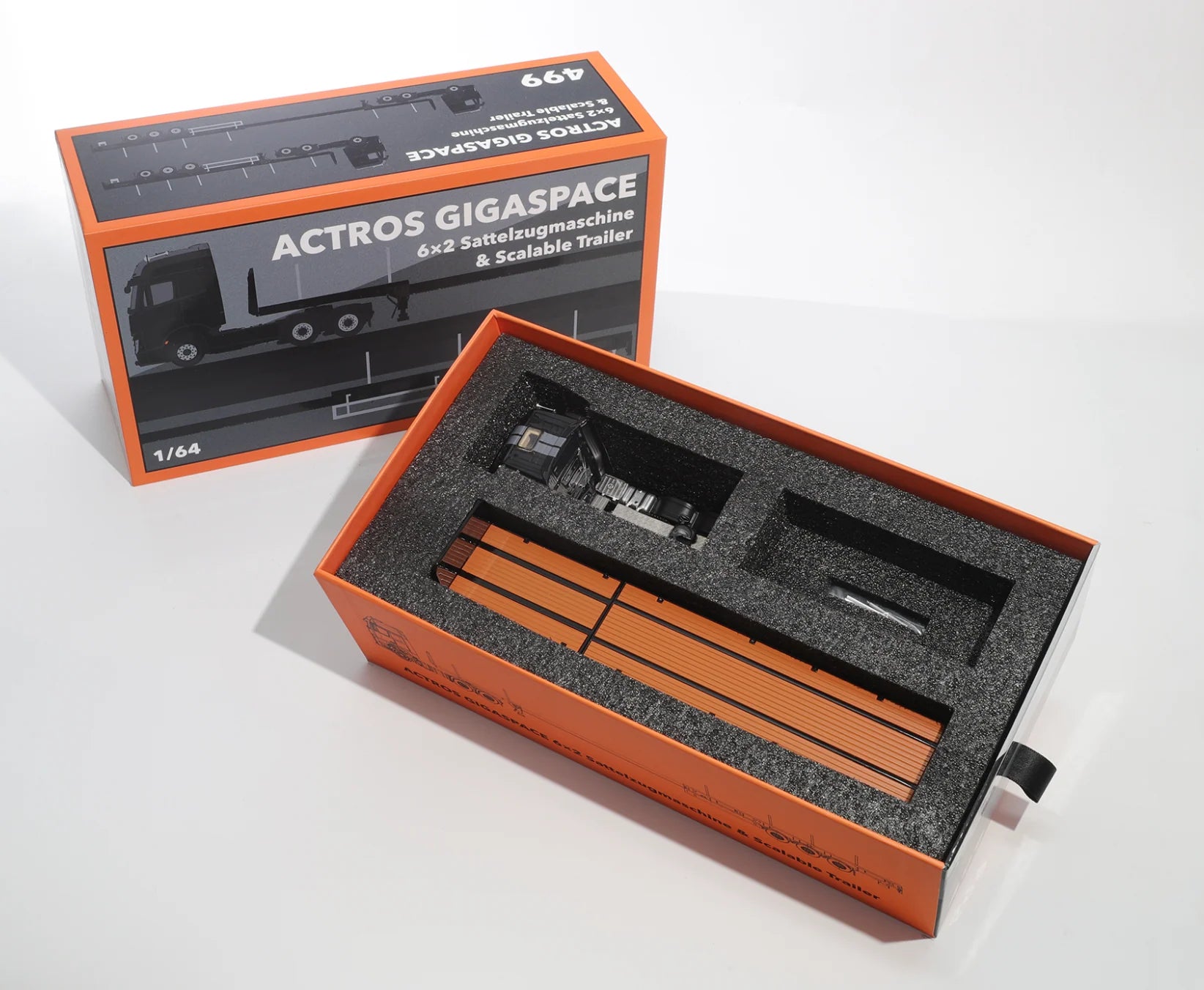 GCD 1/64 Mercedes-Benz Actros 3 axle tractor with retractable trailer Black